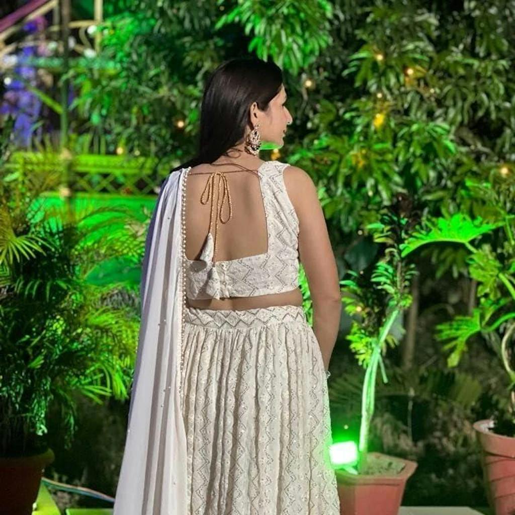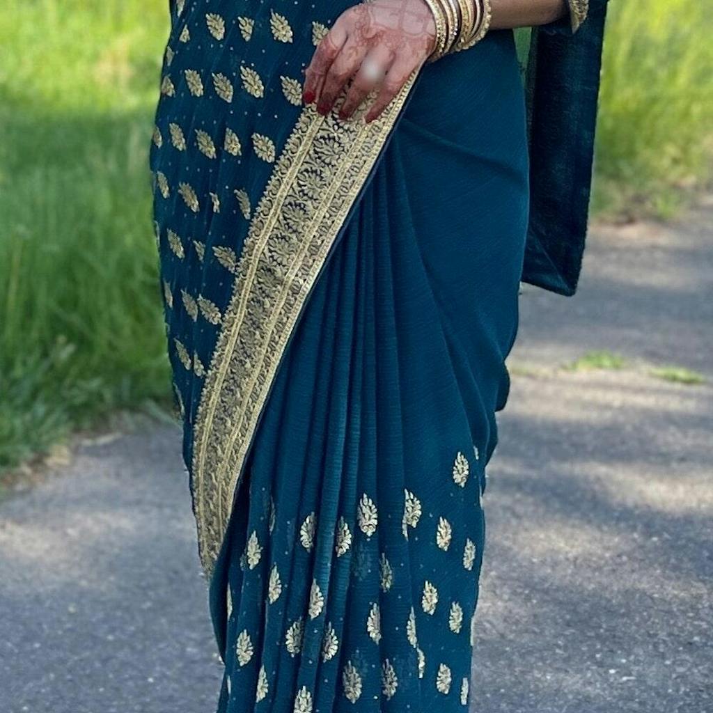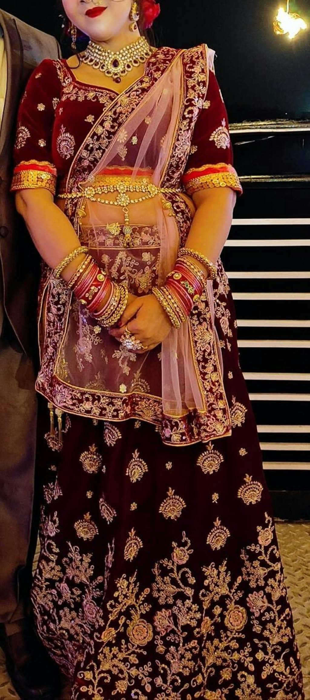 The dupatta completes the traditional look beautifully.