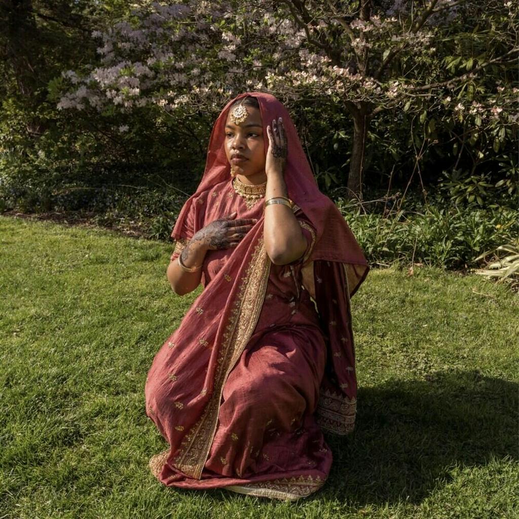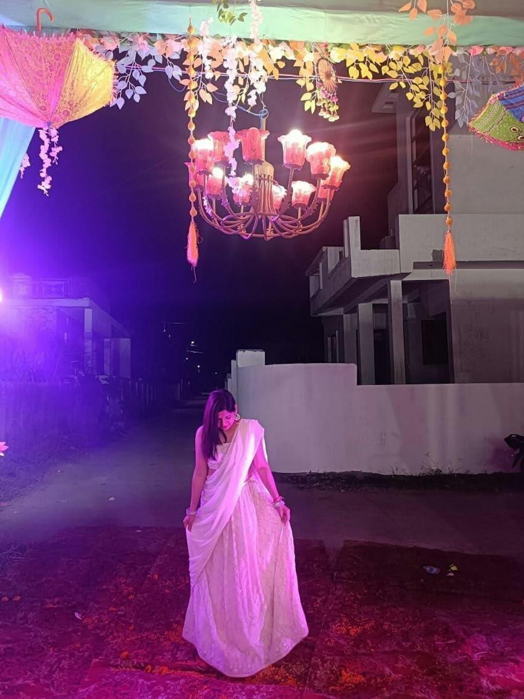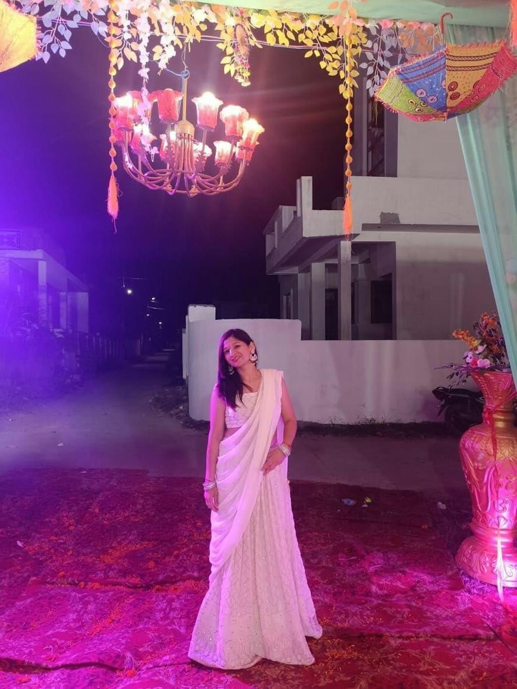 The dupatta completes the traditional look beautifully.