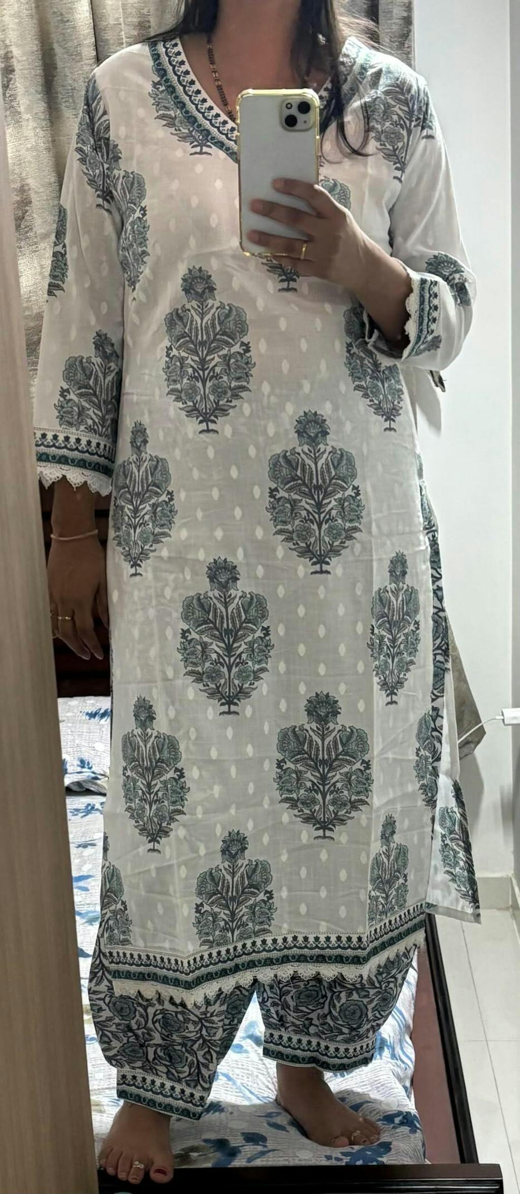 The pant style gives a modern yet ethnic look.