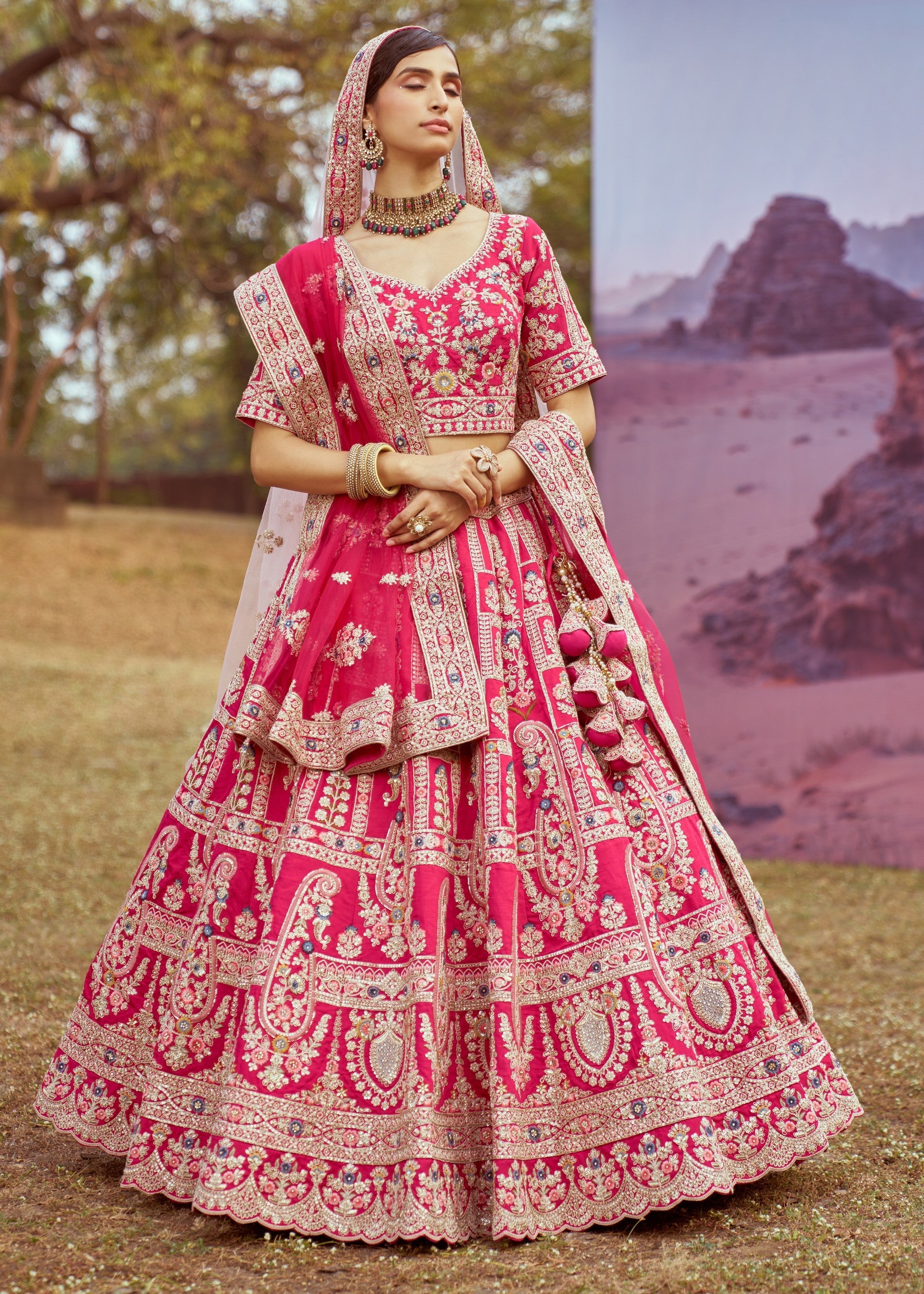 Bright Pink Art Silk Lehenga Choli with Thread, Zari,Dori & Sequins work | Ready To Wear