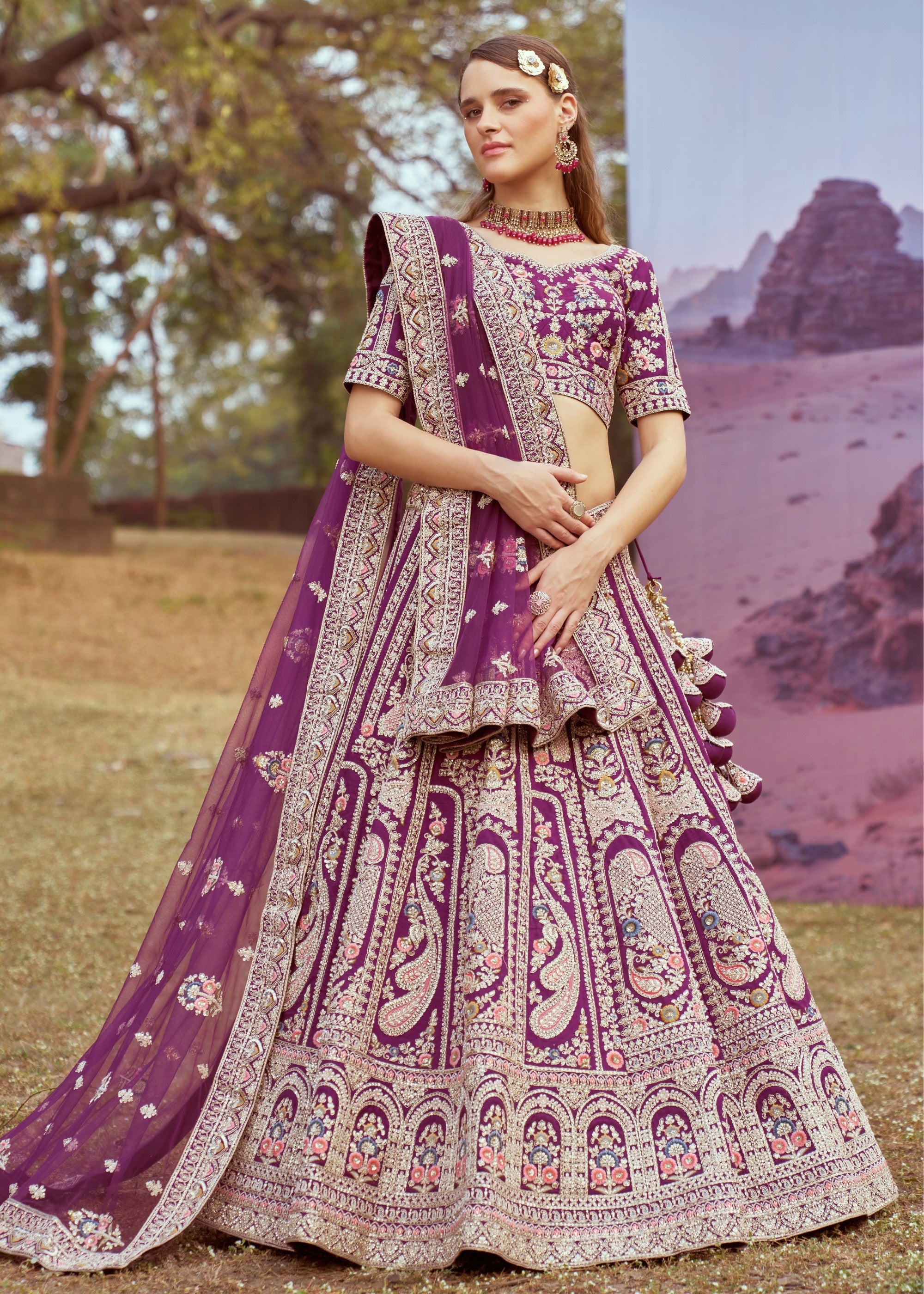 Rasin Purple Crepe Lehenga Choli with Thread, Zarkan & Sequins work | Ready To Wear
