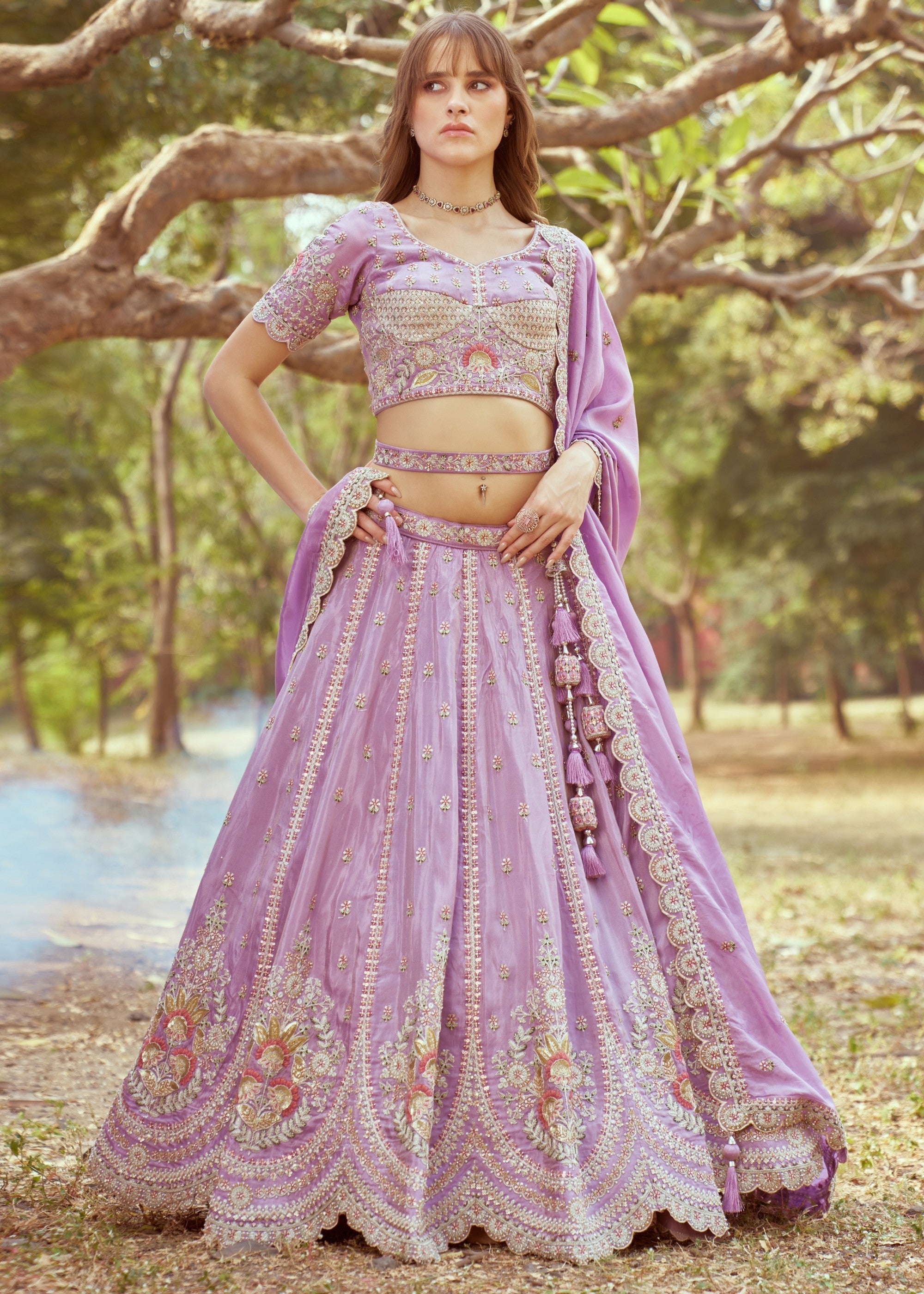 Shades Of Purple Ready to Wear Designer Silk Lehenga Choli with Sparkle & Mirror work | Ready To Wear