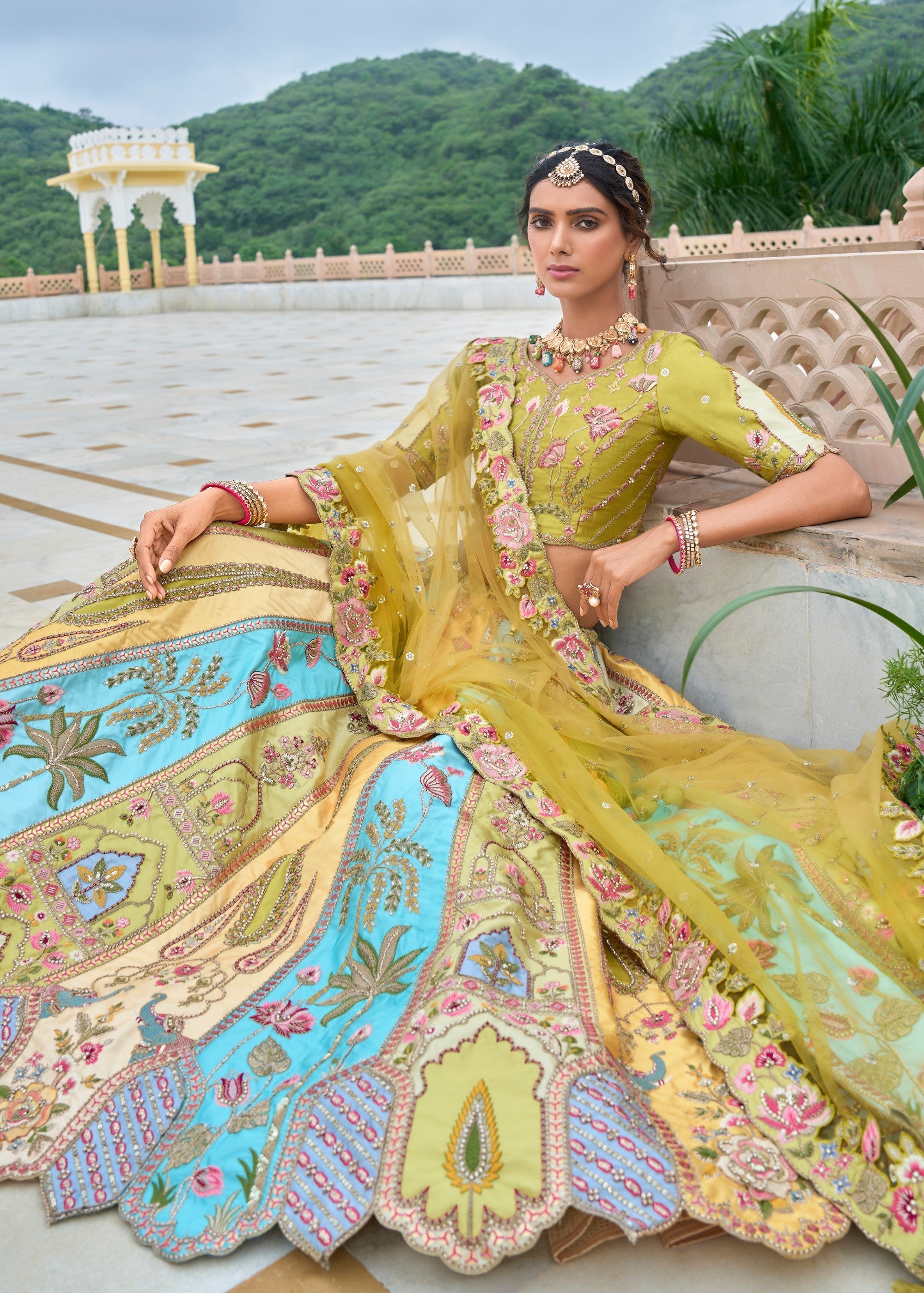 Avocado Green Silk Lehenga Choli with Thread,Zari,Dori & Sequins work | Ready To Wear
