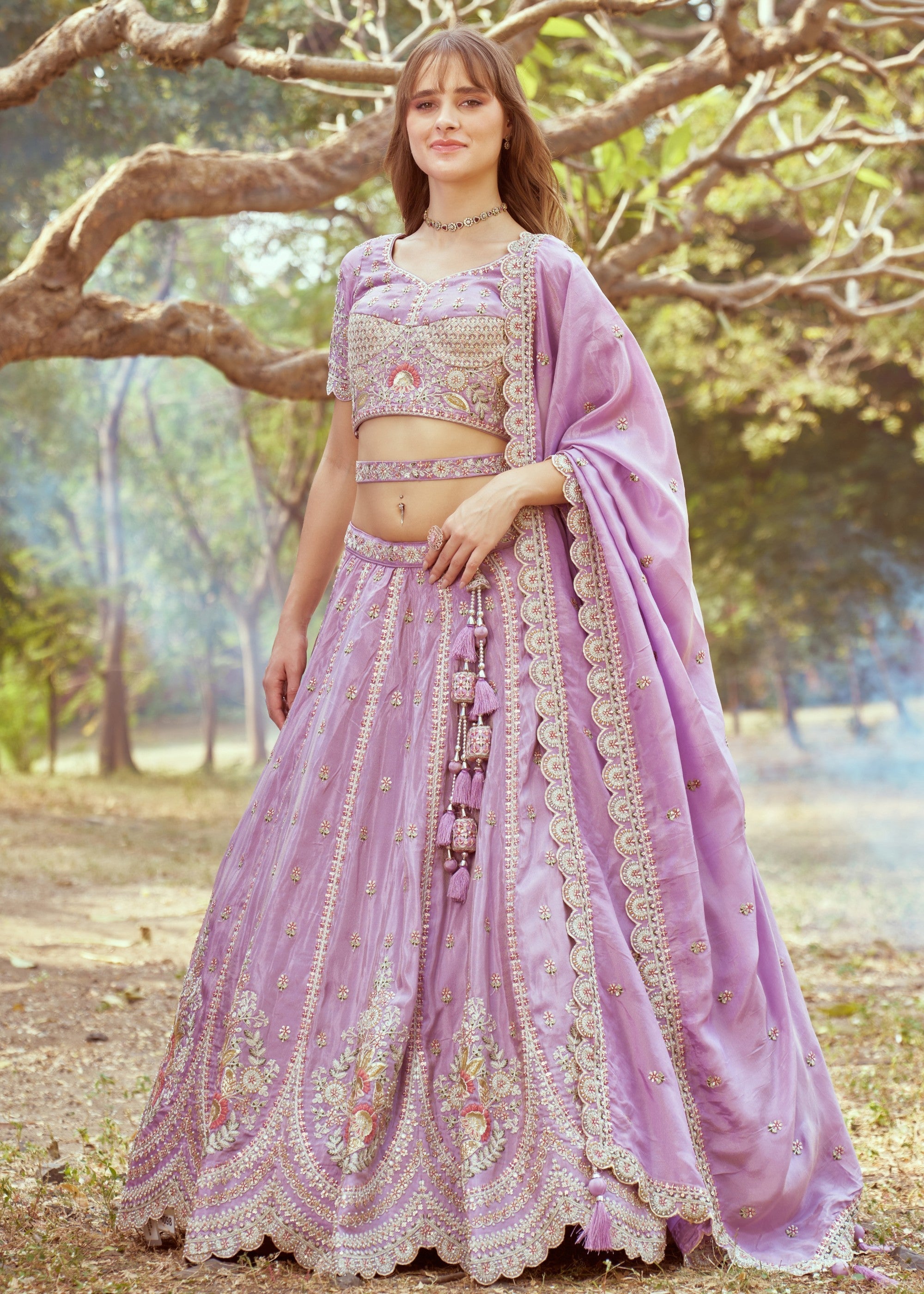 Mauve Purple Designer Soft Net Lehenga Choli with Thread & Zari work | Ready To Wear