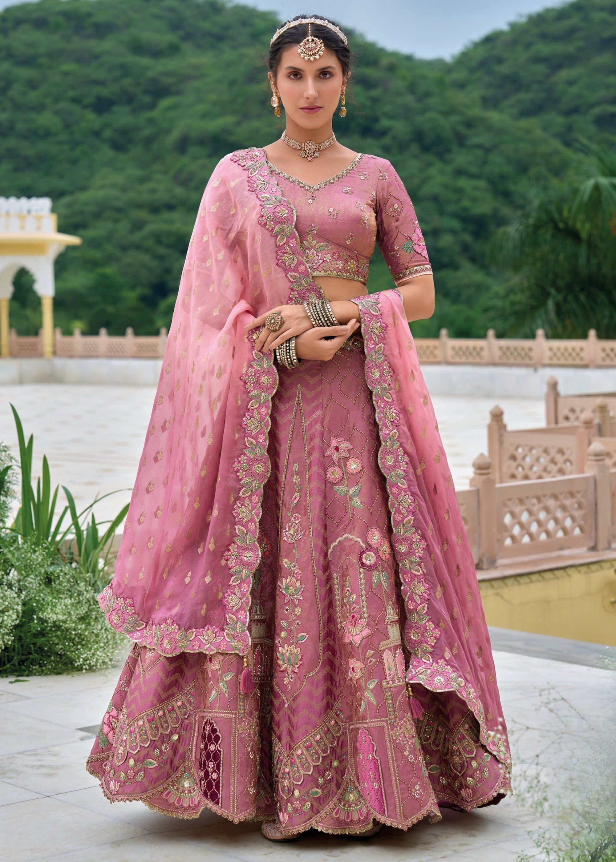 Shades Of Pink Ready to Wear Designer Silk Lehenga Choli with Sparkle & Mirror work | Ready To Wear
