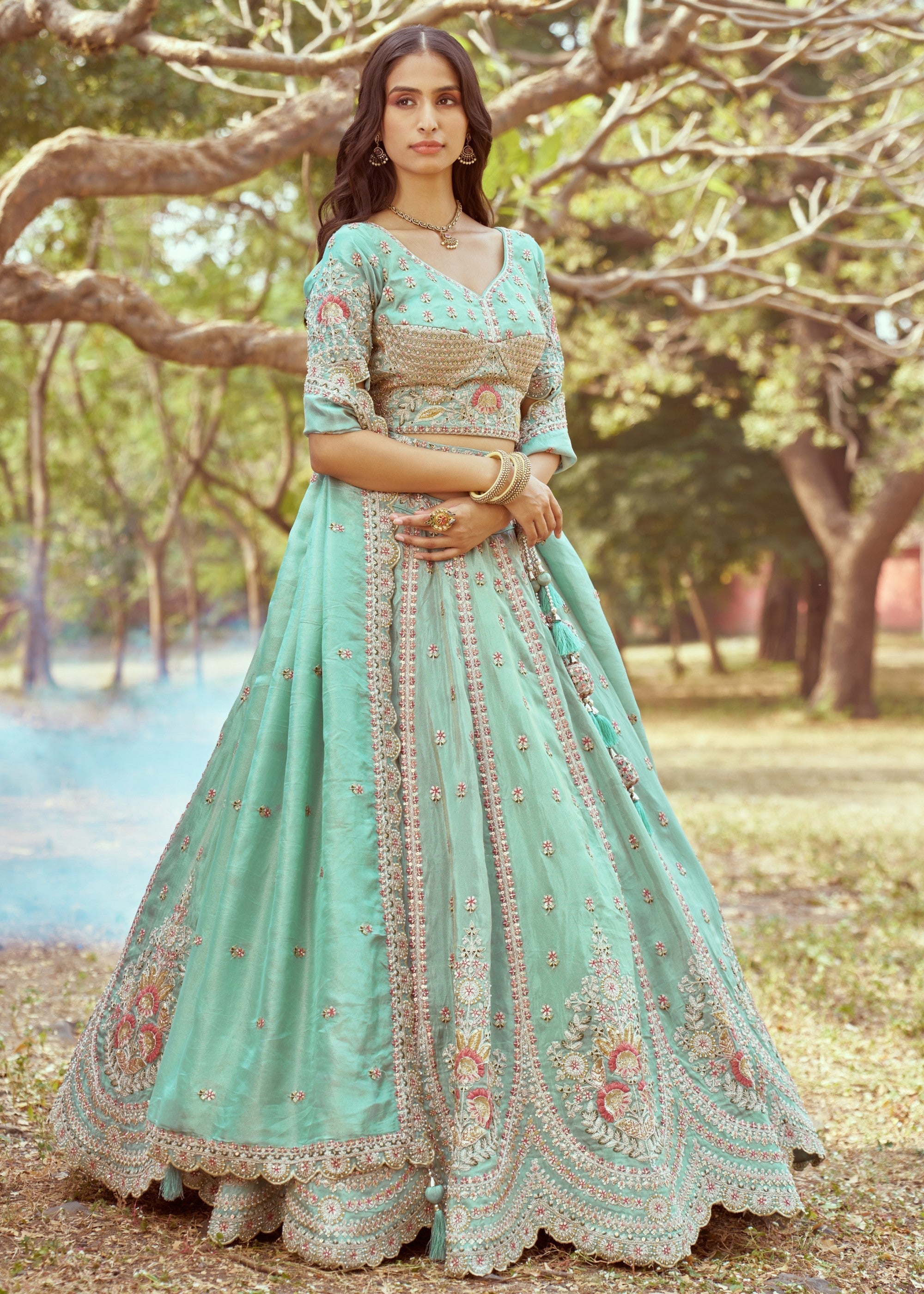 Teal Green Silk Lehenga Choli with Thread,Zari,Dori & Sequins work | Ready To Wear