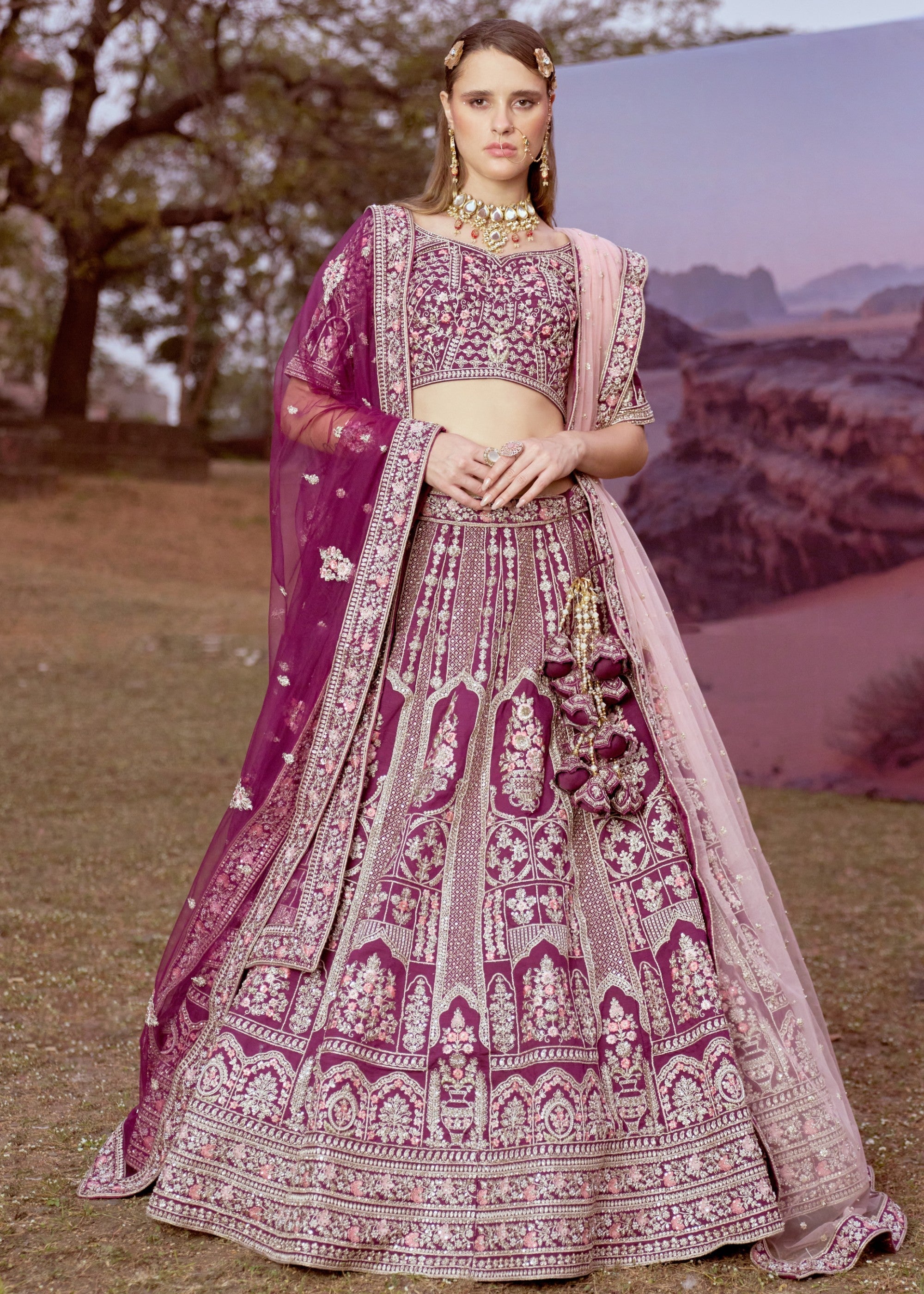 Wine Purple Designer Soft Net Lehenga Choli with Thread & Sequins work | Ready To Wear