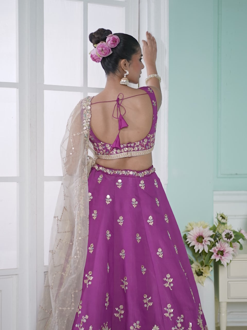 Burgundy- Georgette Fabric Sequins embroidery Semi-Stitched Lehenga & Unstitched Blouse With Dupatta
