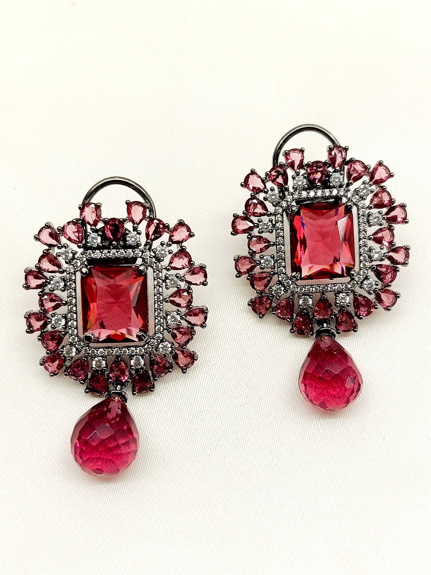 Rediscover timeless elegance with the Alizee Rose Pink Victorian Earrings, designed to infuse every ensemble with grace and poise. These earrings are crafted from black polished brass metal, ensuring both resilience and style, making them an ideal choice for various occasions.