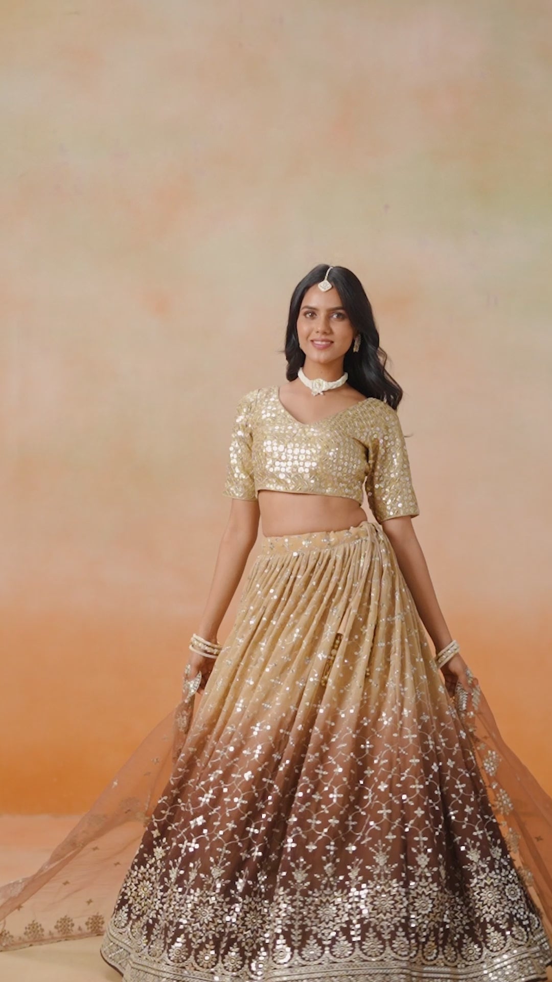 Beige To Brown Gradient Georgette Lehenga With Zari Sequins Embroidery Work Sale price$125.00 USD Regular price$179.95 USD