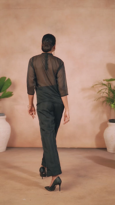 BLACK ORGANZA HANDWORK CO-ORD SET