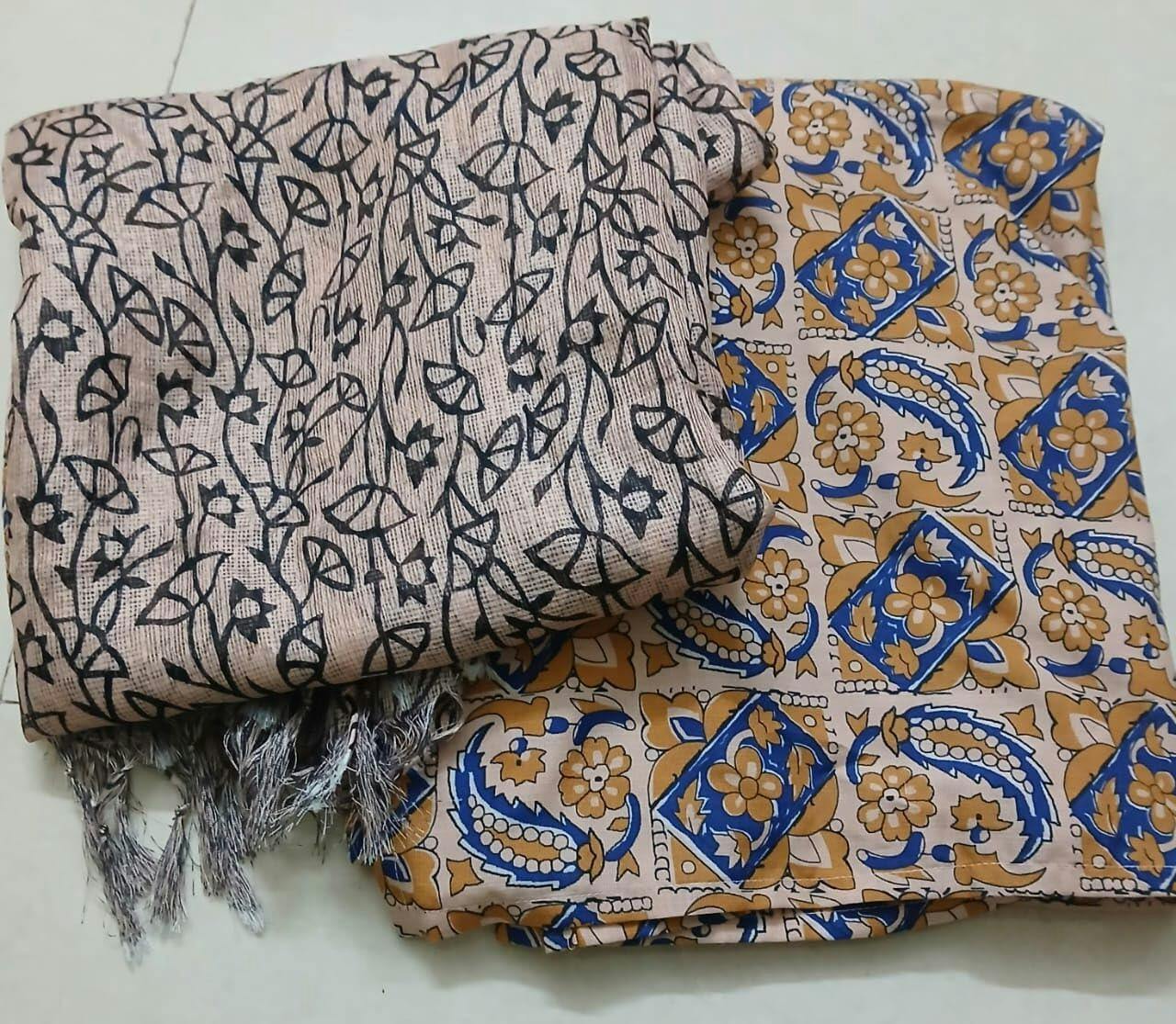Janasya Women's Cream Cotton Blend Floral Printed Anarkali Kurta Set