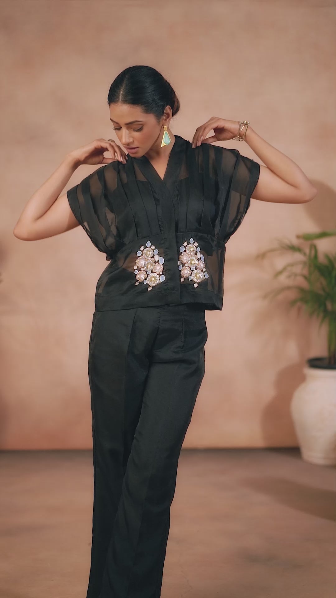 BLACK ORGANZA HANDWORK CO-ORD SET - qivii