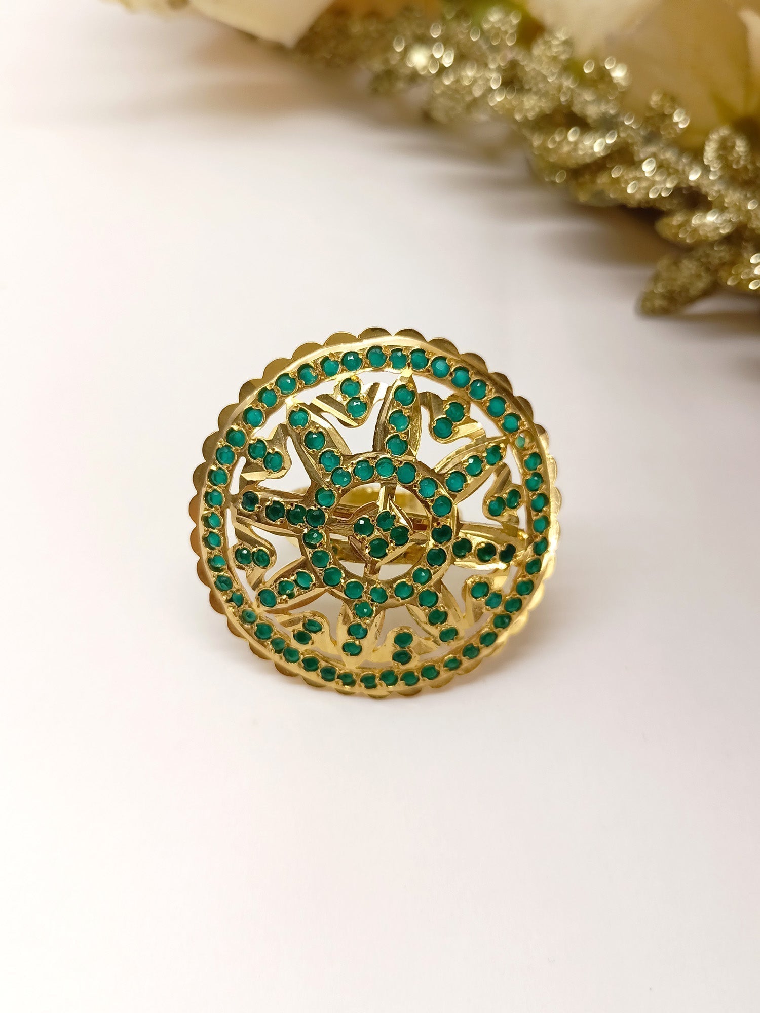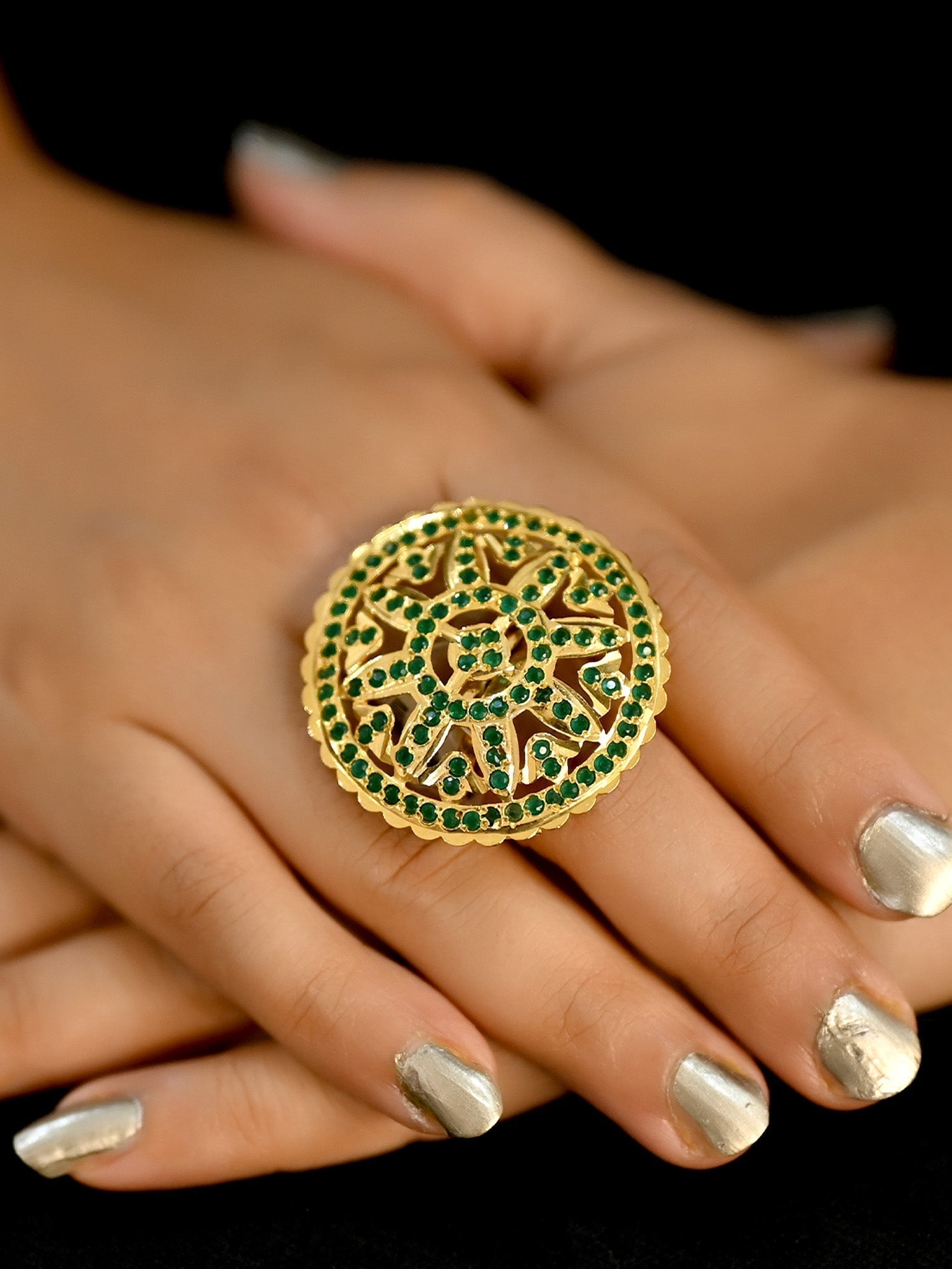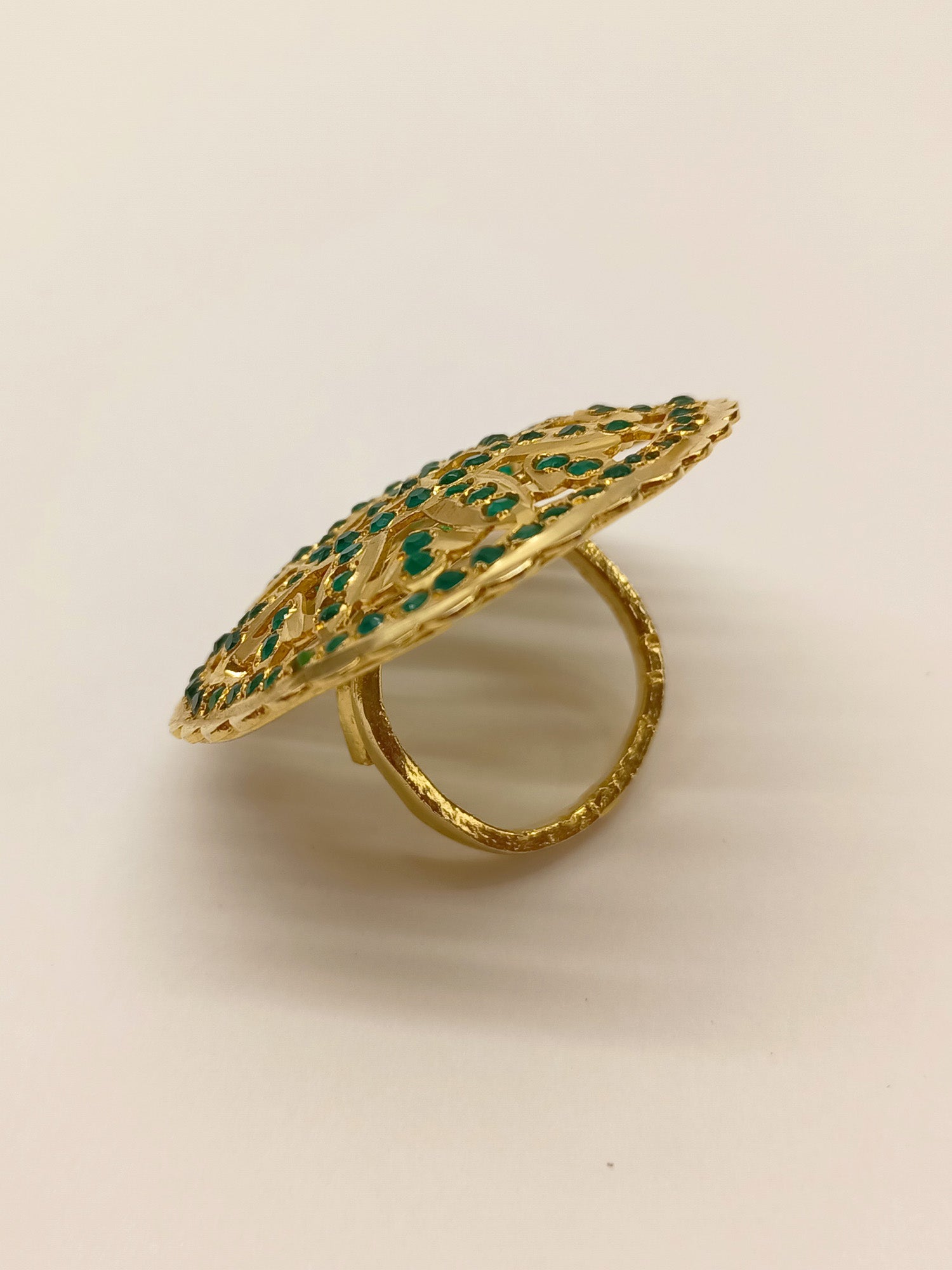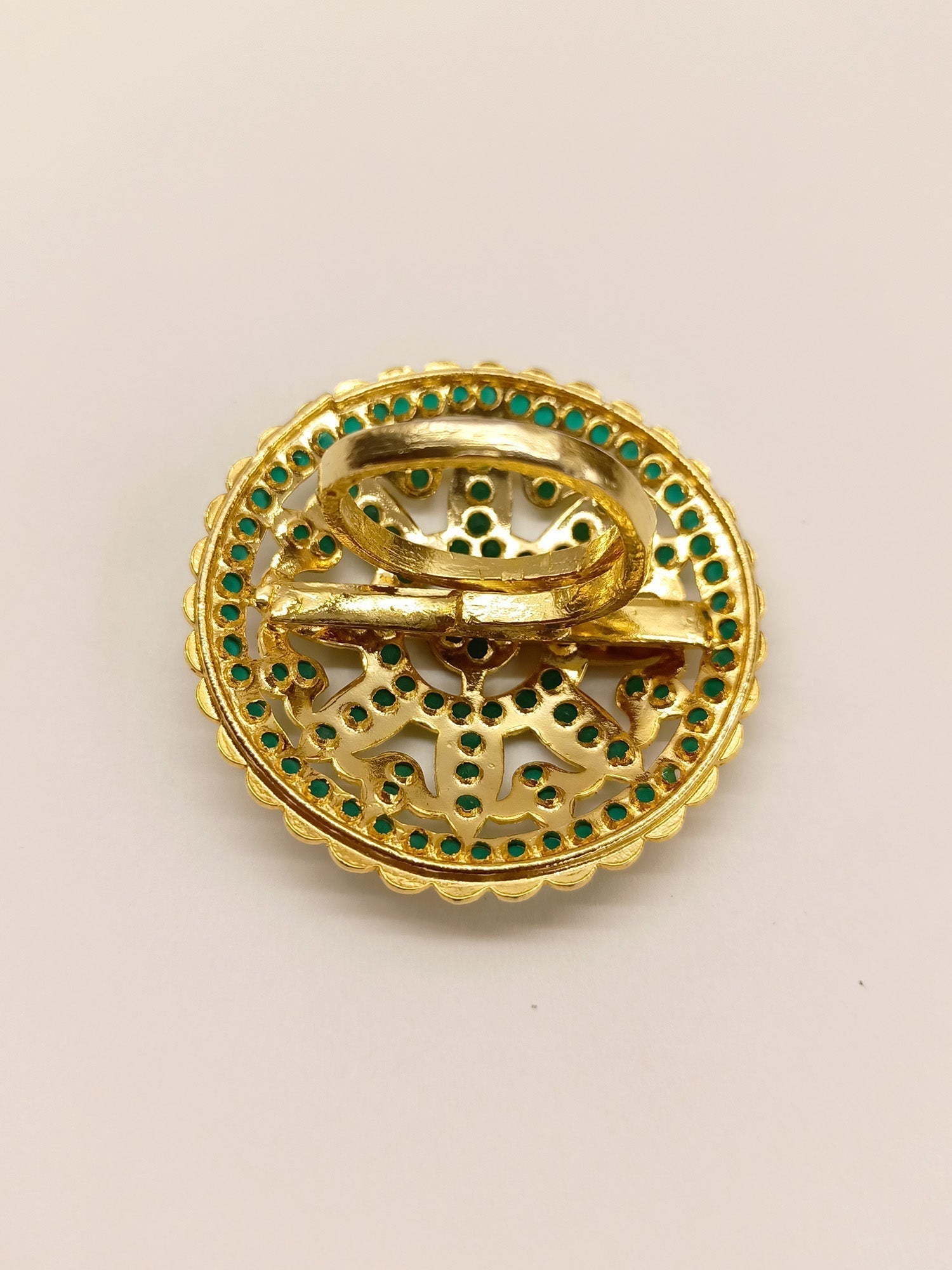 This Green Jadau Finger Ring Is Crafted From Gold Plated Brass Metal And Will Add A Luxurious Touch To Any Look. Perfect For Special Occasions, The Fine Detailing And High Quality Make This Ring A Must-have Fashion Item.