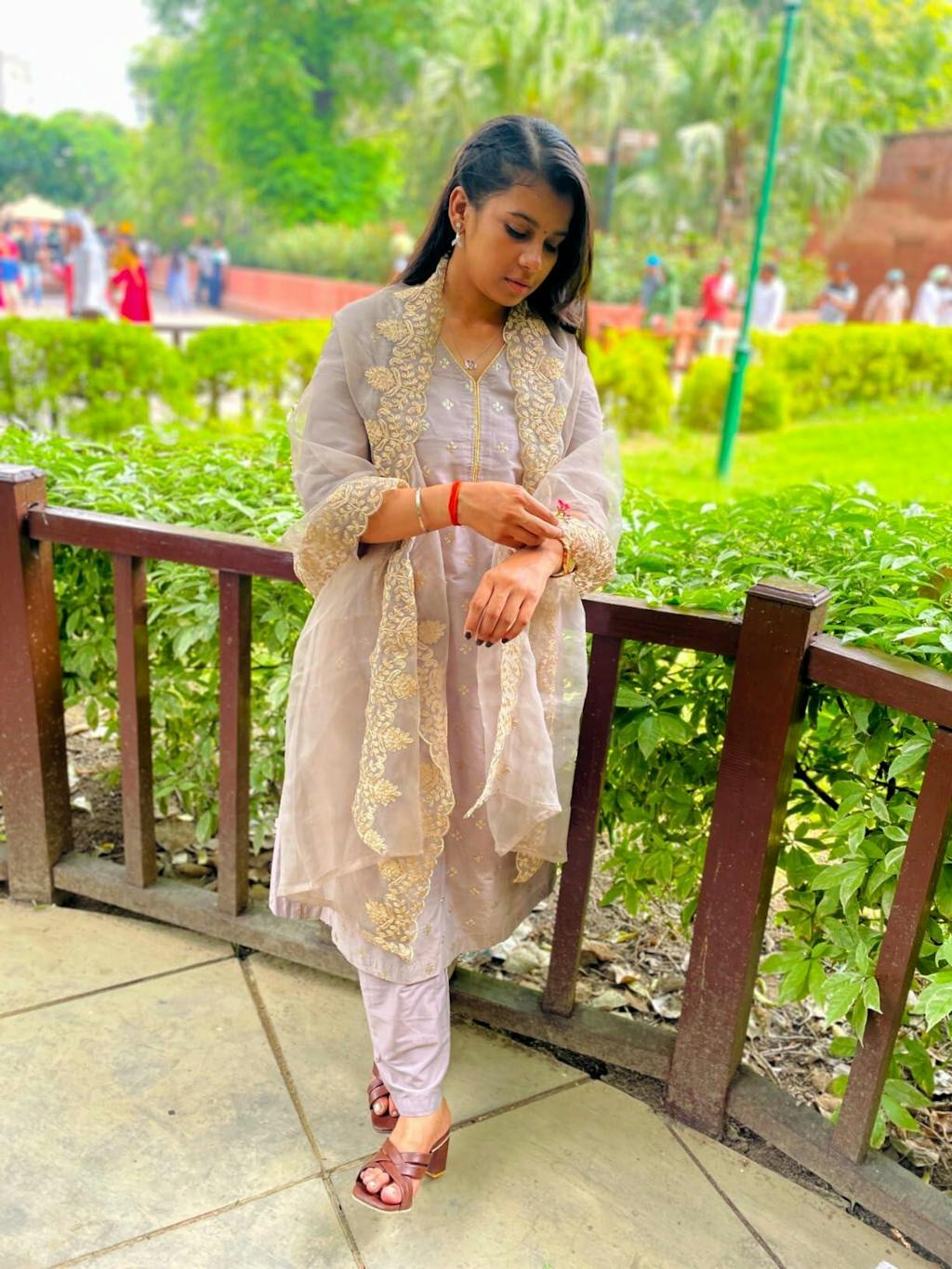 - The anarkali suit is a matching pair of cotton silk pants, offering a blend of comfort and luxury. These pants are designed for both style and ease of movement, ensuring you feel confident and comfortable throughout the day or evening.