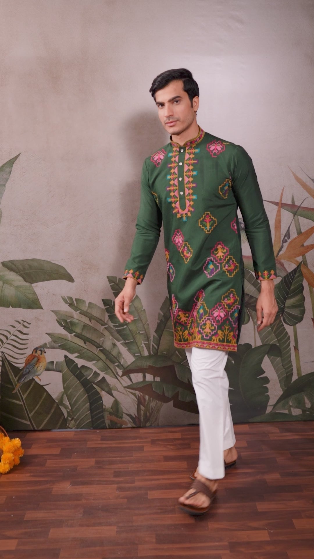 Festive Green Kurta Set with Multi-Thread Embroidery Work Sale price$99.00 USD Regular price$142.95 USD