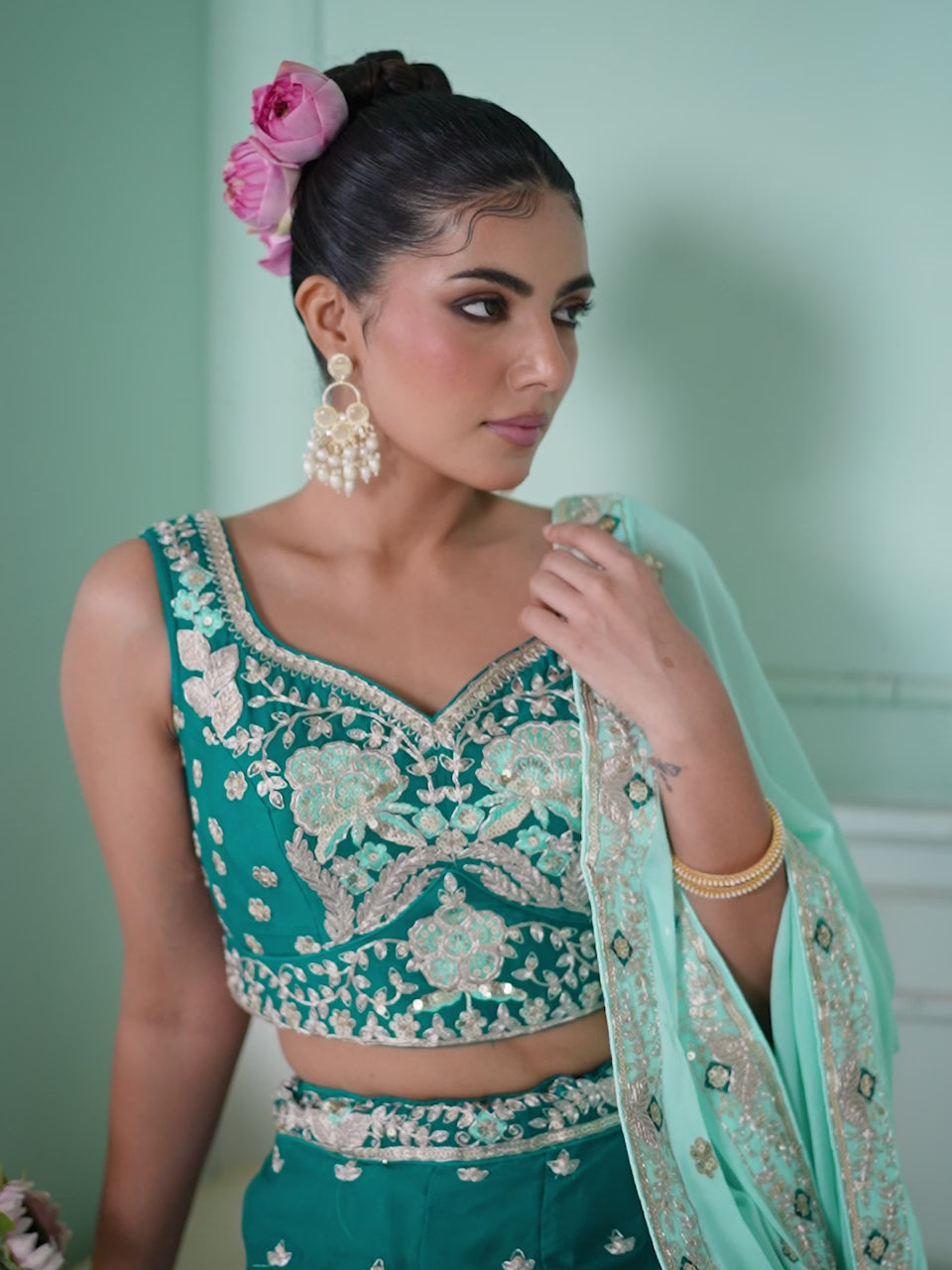 Green- Georgette Fabric Sequins embroidery Semi-Stitched Lehenga & Unstitched Blouse With Dupatta