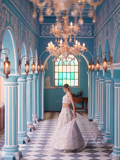 GREY - Net Fabric Sequins embroidery Semi-Stitched Lehenga & Unstitched Blouse With Dupatta Sale price$329.00 USD Regular price$470.95 USD