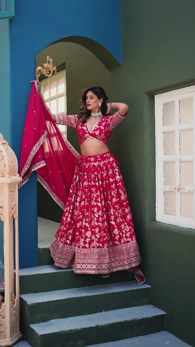 Hot Pink Dola Silk Embroidery Lehenga Choli Sale price$119.00 USD Regular price$197.95 USD