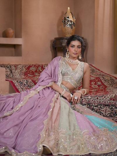 Lavender- Georgette Fabric Sequins embroidery Semi-Stitched Lehenga & Unstitched Blouse With Dupatta - qivii