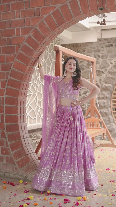 Lavender Jacquard Designer Lehenga With Zari Sequins Embroidery Work
