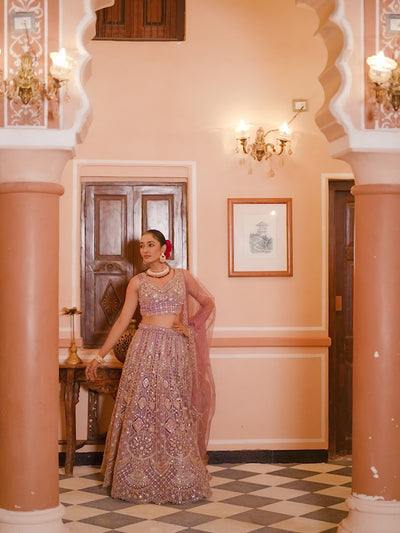 LAVENDER - Net Fabric Sequins embroidery Semi-Stitched Lehenga & Unstitched Blouse With Dupatta