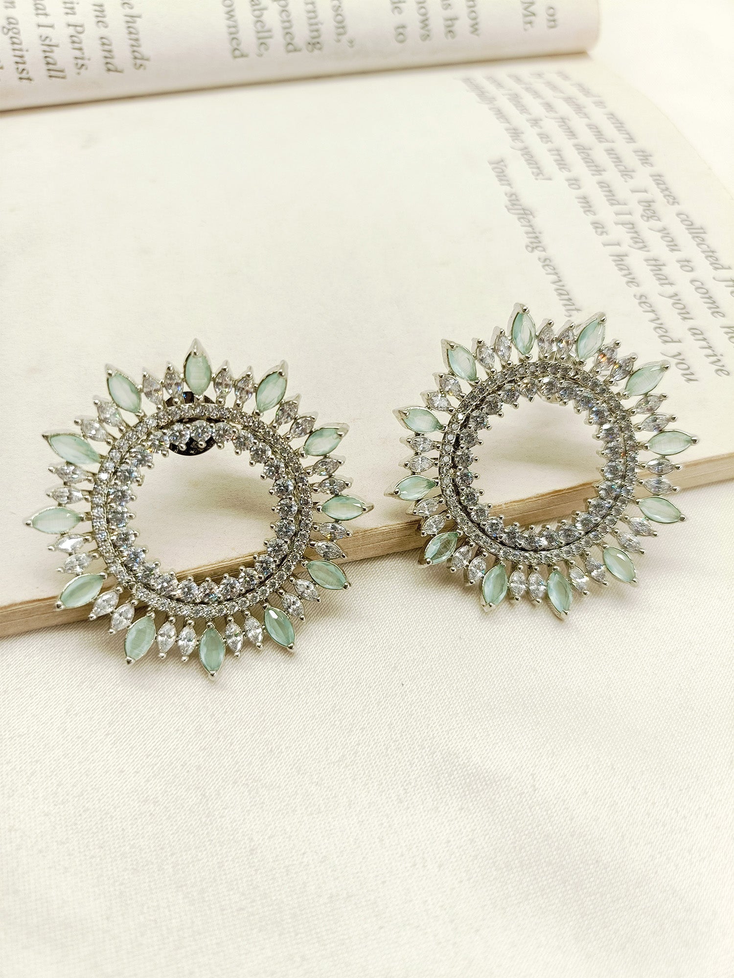 Features:- Stunning mint green marquise stones paired with round American diamonds