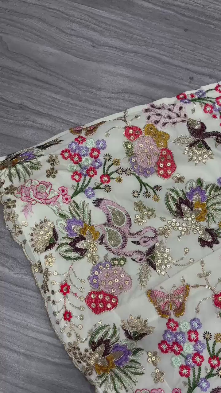 Multi Color Georgette Lehenga With Thread Embroidery Coding Zari Heavy Sequins Work | Ready To Wear