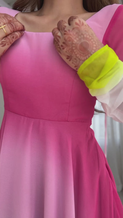 MULTI COLOR HEAVY PURE SOFT FOX GEORGETTE COLOURFULL PADDING ANARKALI SUIT Sale price$70.00 USD Regular price$139.95 USD
