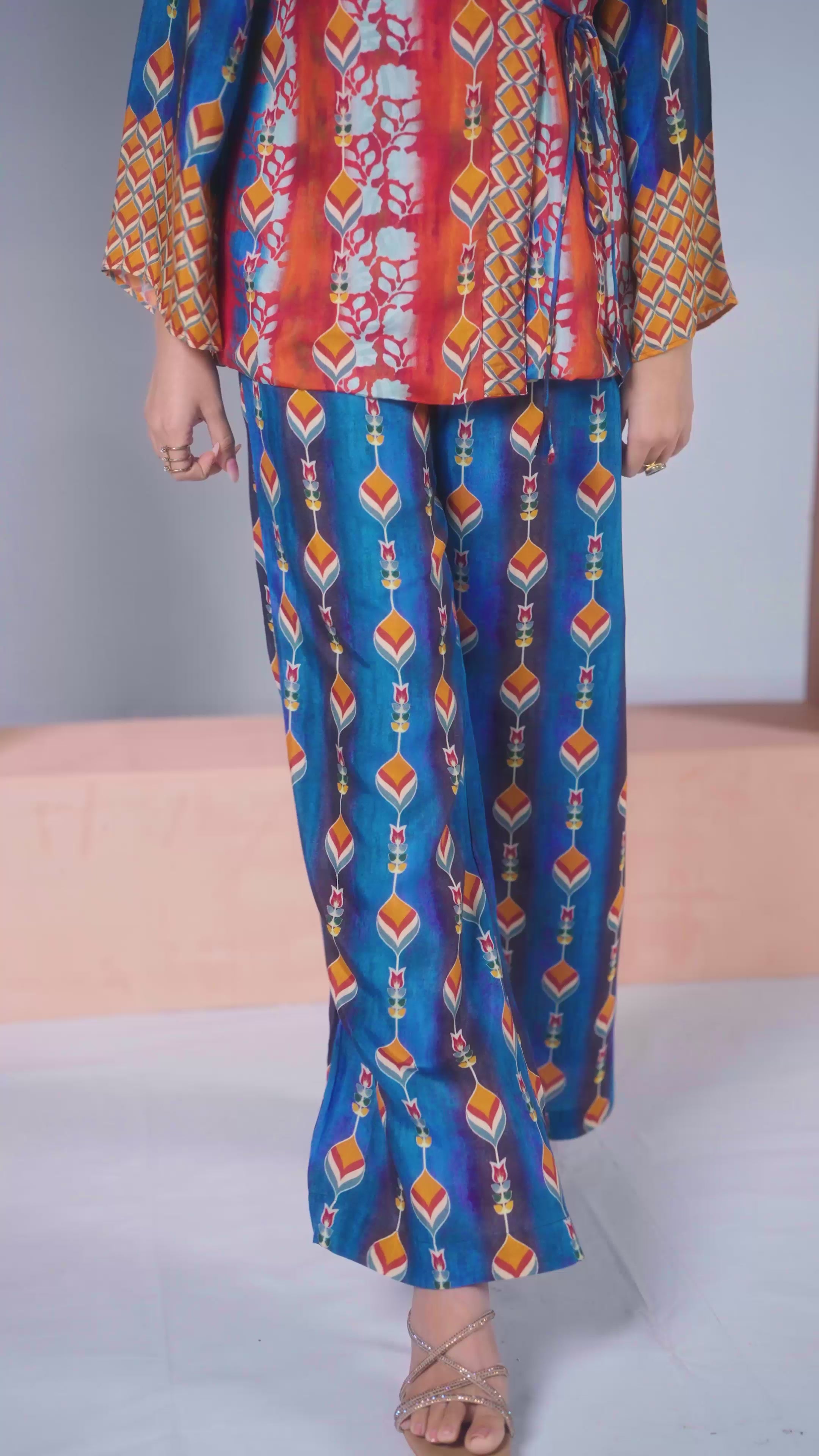 NAVY BLUE PURE MUSLIN SILK PRINTED KIMONO PANT Sale price$85.00 USD Regular price$124.95 USD