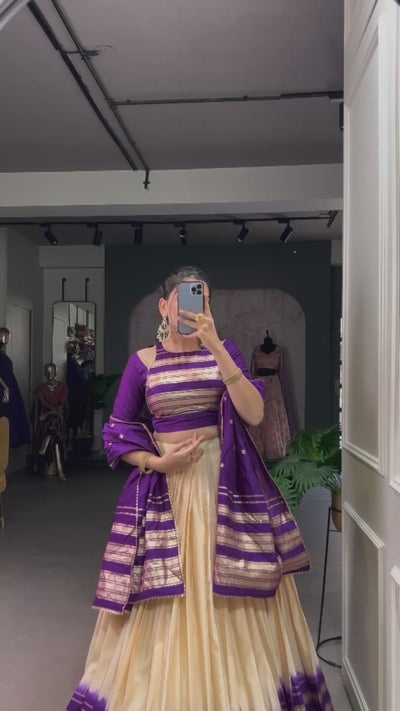 Off White Pure Chanderi Plain With Zari Weaving Work Border Lehenga Choli - INSPIRED | Ready To Wear