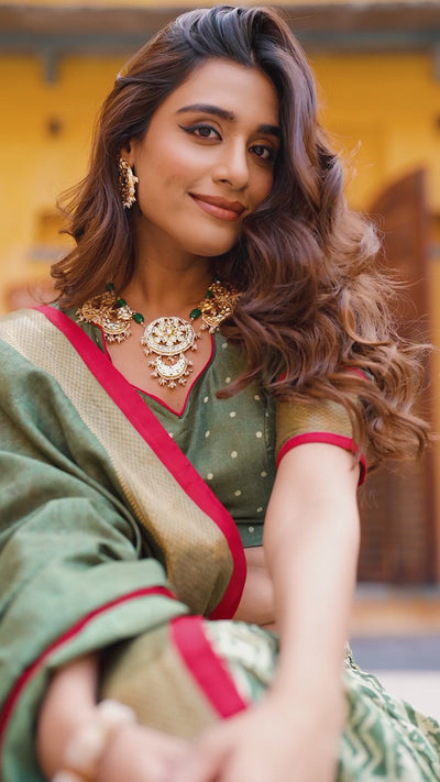 Olive Green Dola Silk Printed Lehenga Choli