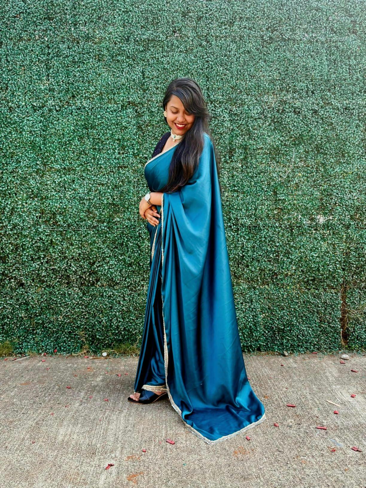 I am abSolutely thrilled wiTh my recent purchase from qivii. The saree is even more stunning in person. I have received countless compliments. Perfect for any occasion . Easy to wear and carry. I feel confident and beautiful. Blouse stitching is perfect fit