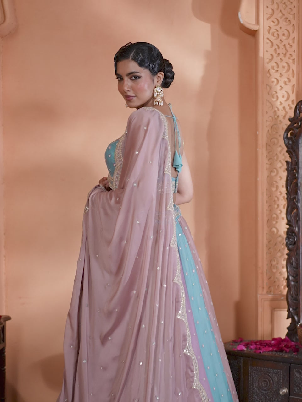 Peach- Georgette Fabric Sequins embroidery Semi-Stitched Lehenga & Unstitched Blouse With Dupatta Sale price$167.00 USD Regular price$239.95 USD
