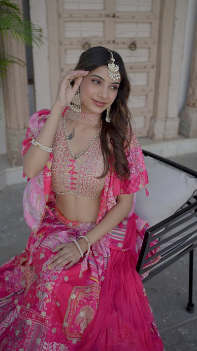 Pink Digital Print And Embroidery Work Silk Lehenga With Stylish Blouse
