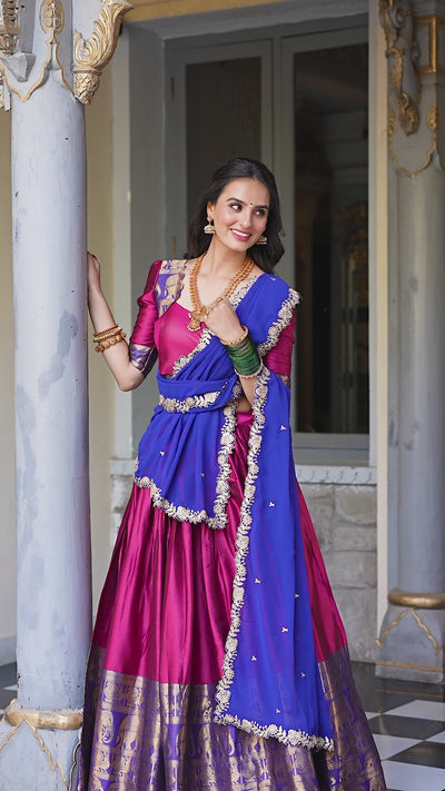 Pink Narayan Pattu Zari Weaving Work Lehenga Choli | Ready To Wear