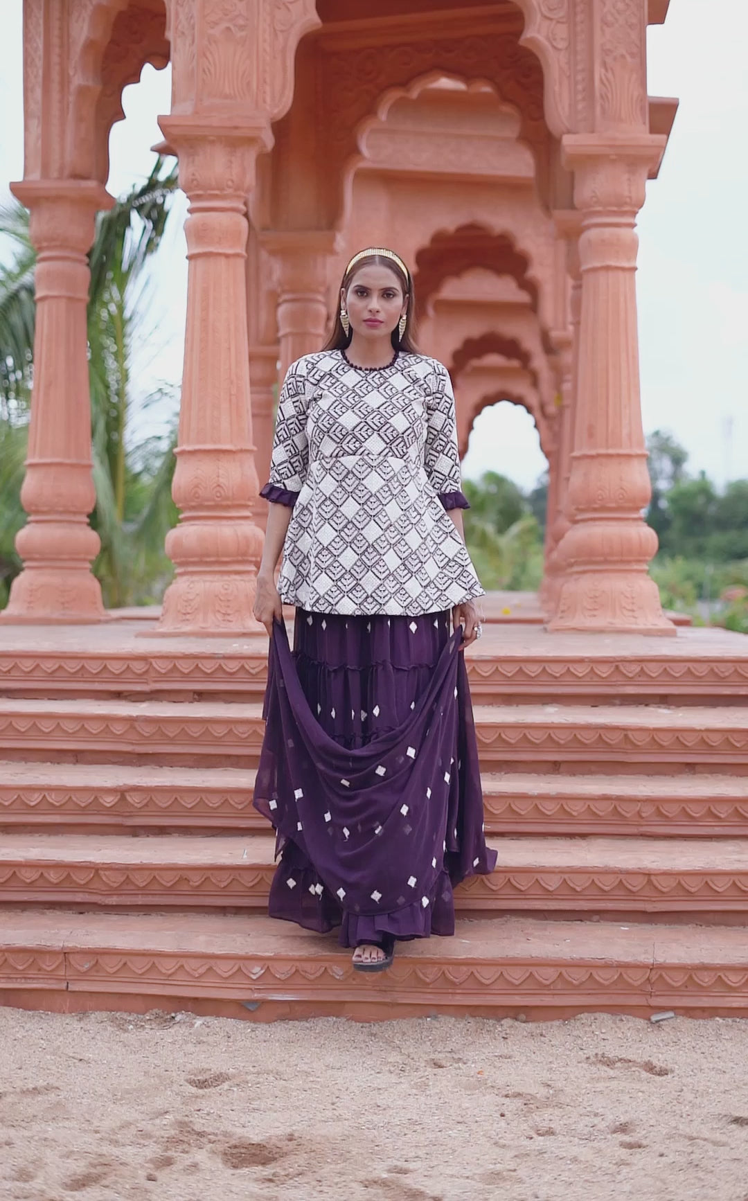PURPLE HEAVY FOX GEORGETTE WITH COTTON EMBROIDERY WORK | Ready To Wear
