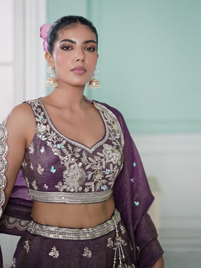 Purple- Tissue Fabric Sequins embroidery Semi-Stitched Lehenga & Unstitched Blouse With Dupatta