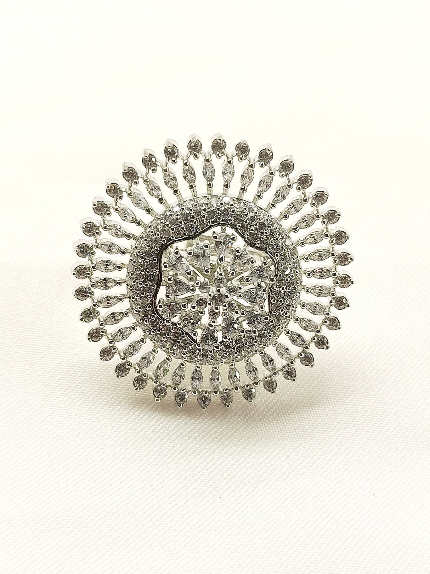 Elevate Your Style With Our White American Diamond Finger Ring. Crafted From Silver Plated Brass, This Adjustable Ring Sparkles With Elegant American Diamonds. Add A Touch Of Sophistication To Any Outfit And Make A Statement With This Luxurious Piece.