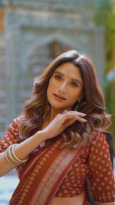 Rust Orange Tasar Silk Lehenga Choli With Saprkle Details