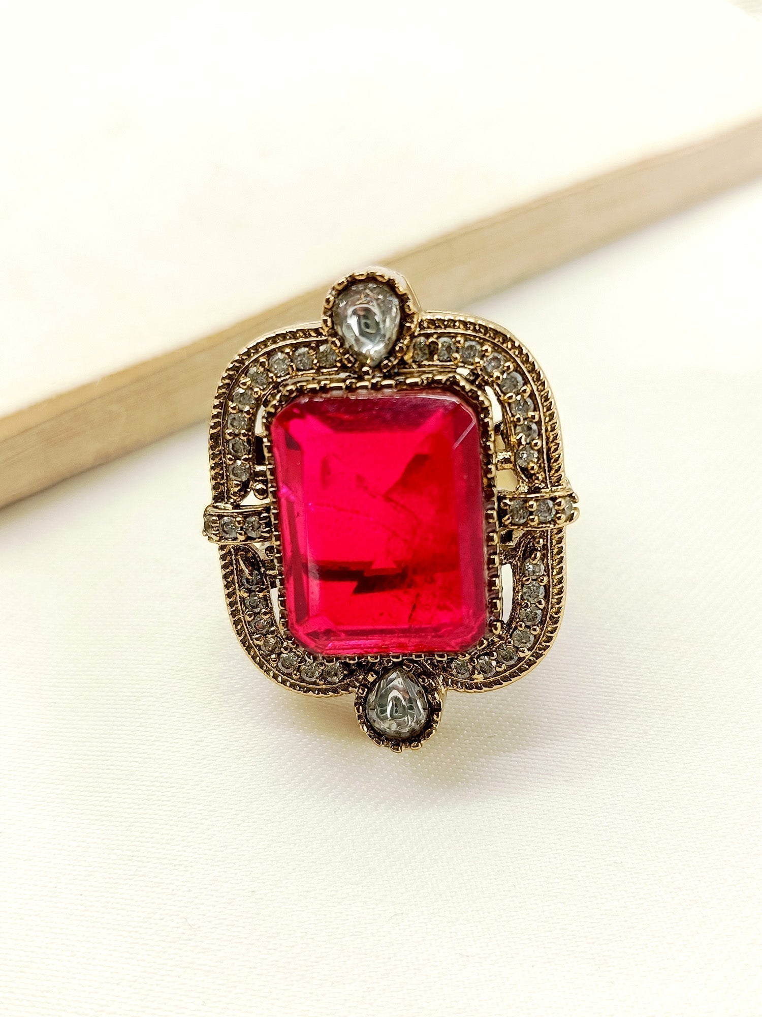 Enhance Your Traditional Look With Our Victorian Finger Ring. Adjustable Antique Gold Plated Brass Metal With American Diamond Setting, This Ring Adds A Touch Of Elegance And Cultural Significance To Your Ensemble. Elevate Your Style With This Exquisite Piece.