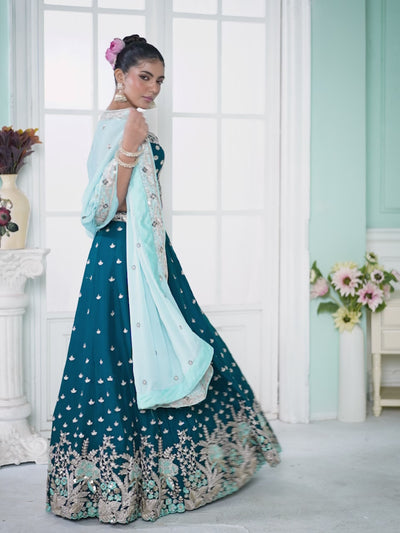 Teal- Georgette Fabric Sequins embroidery Semi-Stitched Lehenga & Unstitched Blouse With Dupatta