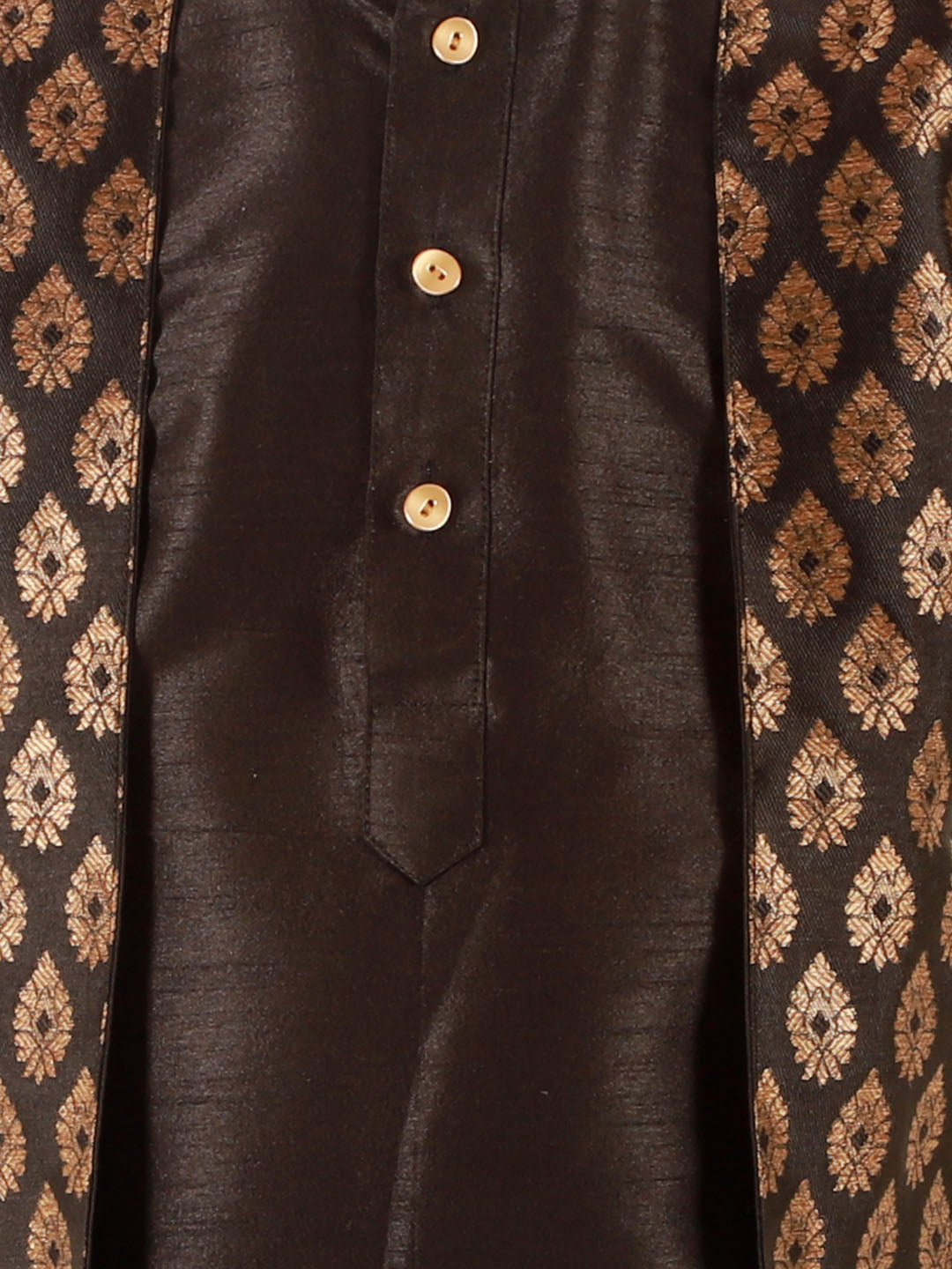Vastramay Boys' Black Jacket Style Kurta And Rose Gold Pyjama Set
