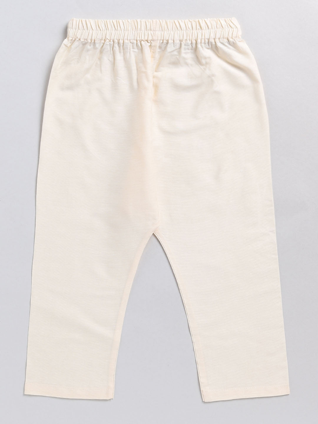 VASTRAMAY Boy's Cream Floral Printed Angrakha Kurta Pyjama Set