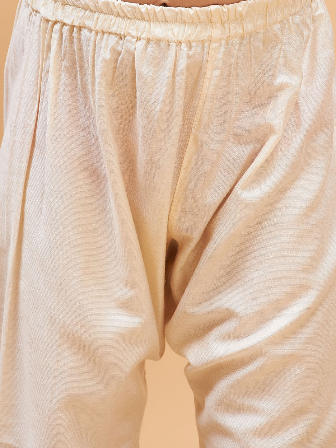 Cream solid churidar, drawstring closure
