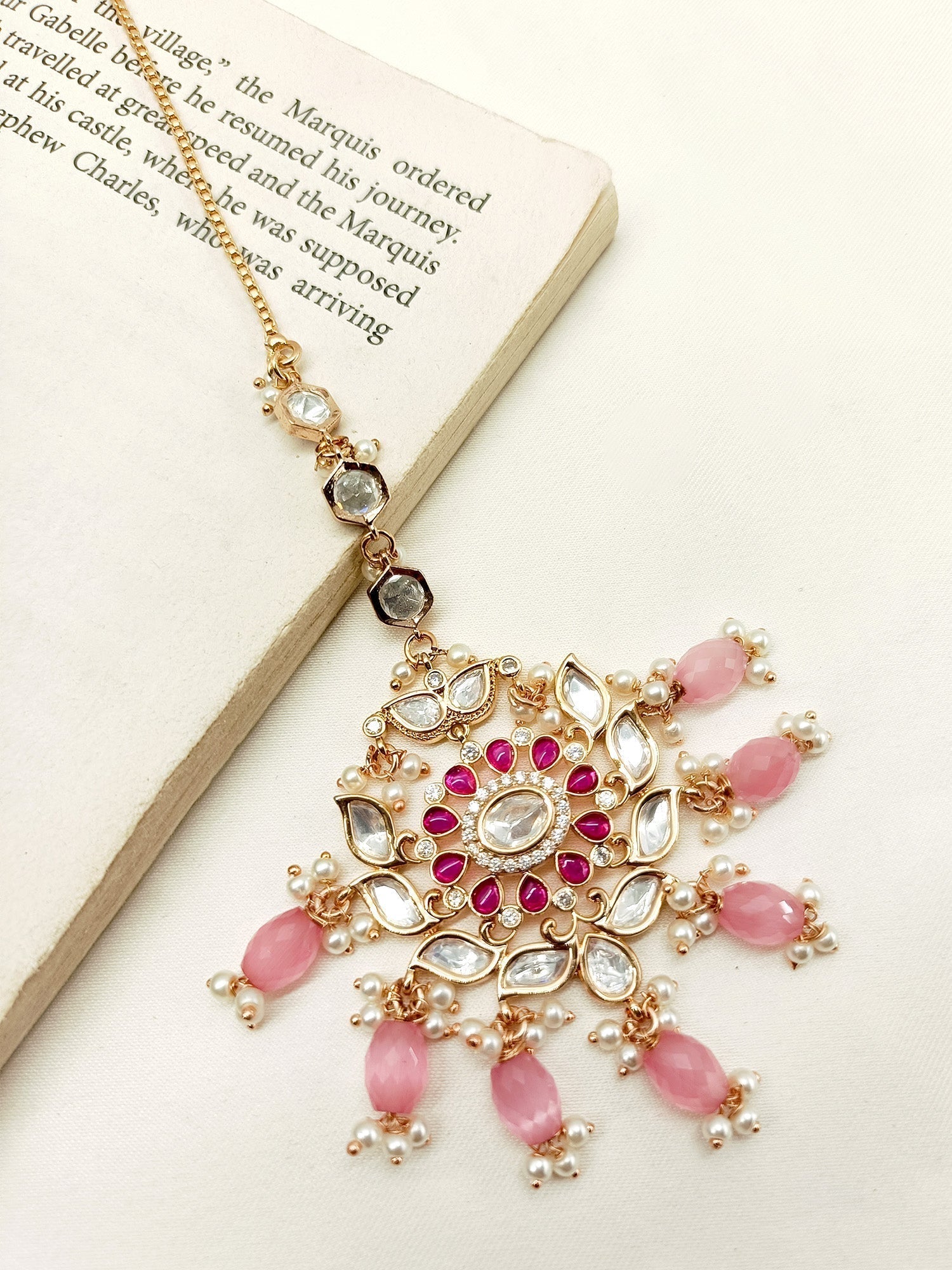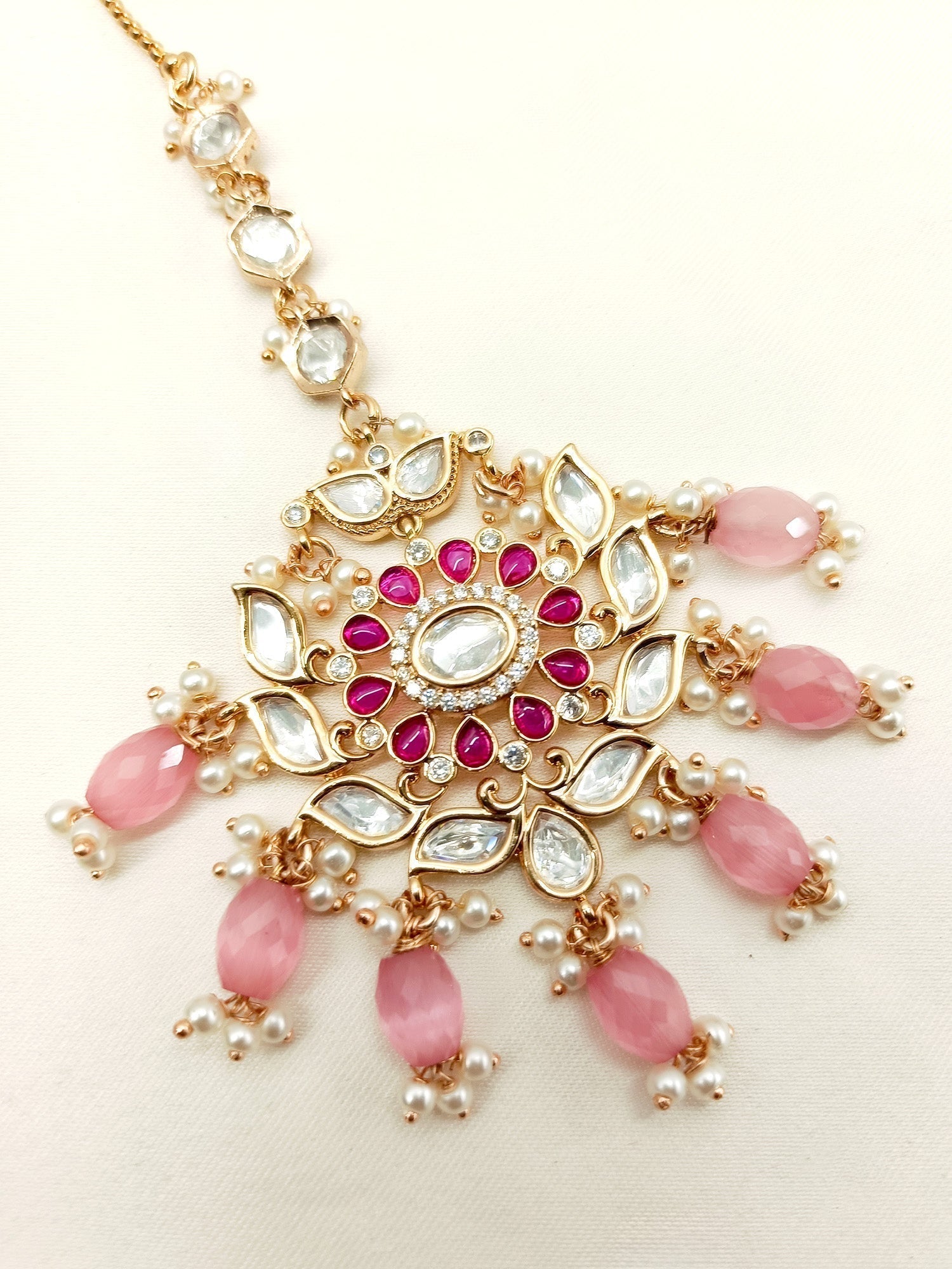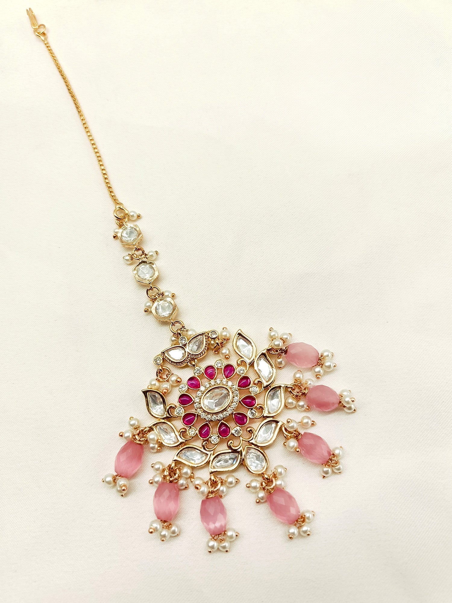 Expertly Crafted With Traditional Kundan Design, This Maangteeka Is Made Of Gold Plated Brass Metal And Features Intricate Pearl And Beads Hanging. Add A Touch Of Elegance And Tradition To Any Outfit With This Beautiful Piece.